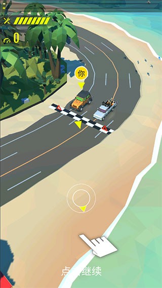1. 打开最新版本的“Dust Drift”进入游戏。玩家需要通过圆盘控制赛车的运动方向。
