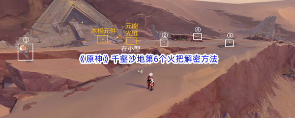 原神千壑沙地第6个火把解密方法介绍,原神千壑沙地第6个火把位置在神的峡谷的右上角,玩家们需要来到山坡上面吹散小型涡流拾取元能光锥,找到触碰并本相元件,靠近并点燃4个火把即可完成解密。接下来就让小编来给大家详细介绍一下吧。