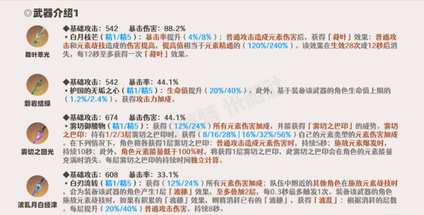 2、磐岩结绿:通用五星武器,提供暴击和攻击力,降低圣遗物毕业难度