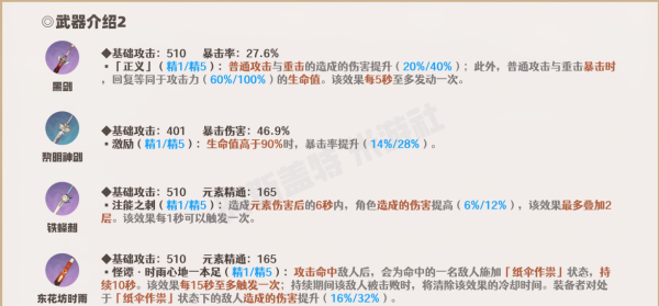 1、黎明神剑:超容易满星的三星武器,并且能够提供双暴属性,但是最好配队里带个盾。