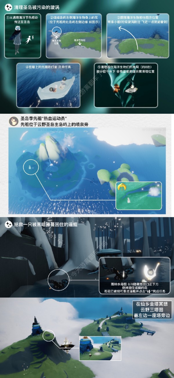 Sky光遇2023年5月23日每日任务完成攻略,Sky光遇2023年5月23日每日任务分别是清理圣岛被污染的漩涡、在云野重温先祖的美好回忆、拯救一只遥鲲、在仙乡金塔冥想。接下来就让小编来给大家详细介绍一下吧。