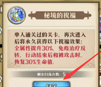 确认要扫荡后,会直接得到关卡奖励的,不需要进入战斗的,还可以再次扫荡;没有通关过的关卡,是不同有这个扫荡按钮的。